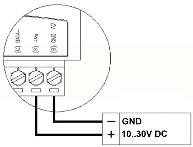 The output modules feature two terminal blocks, to which you can apply a supply voltage of 10..30 V DC. The following colors are recommended for the wires: