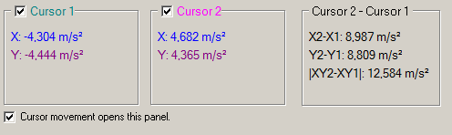 2 cursors can be activated and shifted. The measurement data of the selected position are displayed.