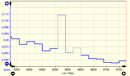 The curves show magnitude and phase of the vibration signal versus rotation speed or multiples of rotation speed. Each curve has its own y-axis which can be scaled and scrolled independently.