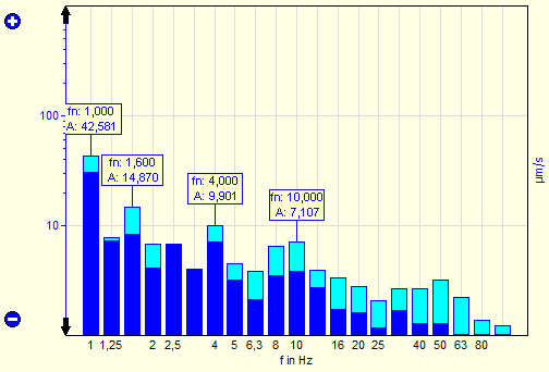 With activated amplitude list function VM-OCT measures the maximum amplitudes and charts them. They can also be shown in the diagram if desired.