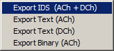 This option exports the signals of the measuring channels (ACh) into a file in binary format.