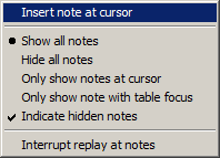 Notes are displayed as running numbers, not as text. If Only show notes at cursor is active at the same time, only the note closest to the cursor is displayed in full length and all other notes are displayed with running numbers.